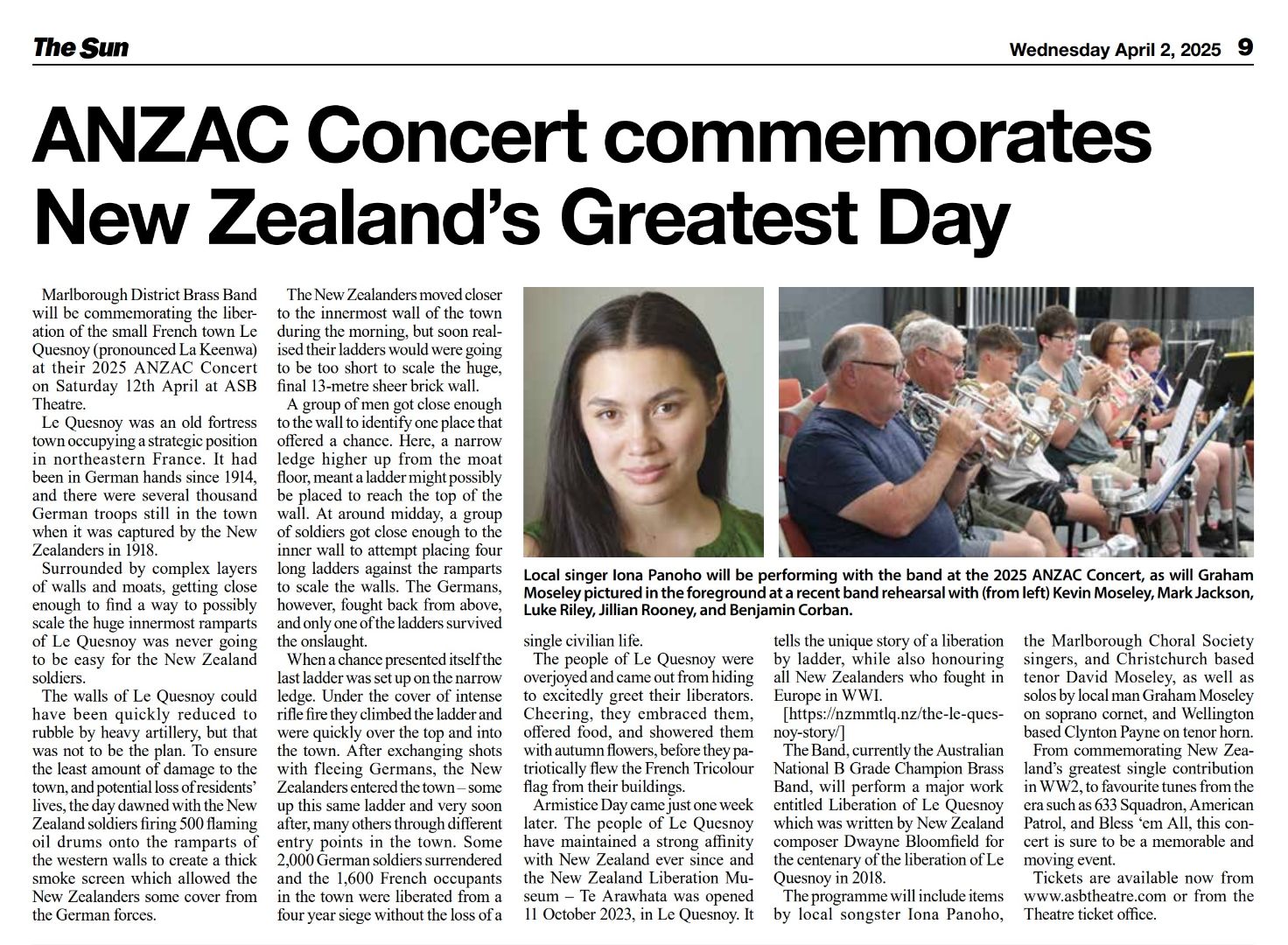 2025.04.02 The Sun "ANZAC Concert Commemorates NZ Greatest Day"